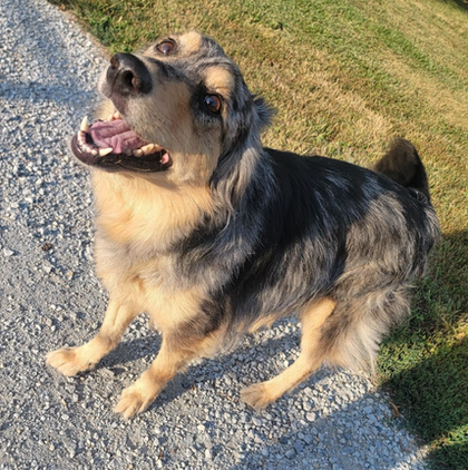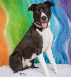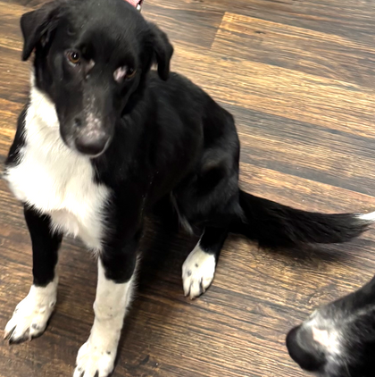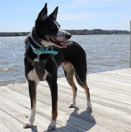 Piper's owner passed away and she needs a new home! This striking border collie mix has one blue eye and one brown one. She's spayed, current on vaccinations and HW negative. Previously a farm dog, she loves to run with the cows. Loves kids, but 10+ recommended since she jumps on them to play.